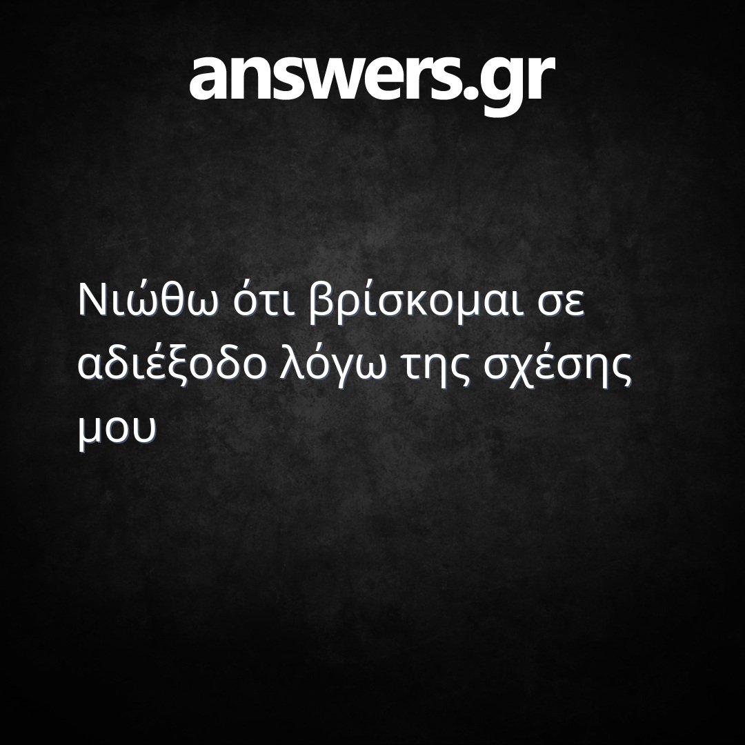 Νιώθω ότι βρίσκομαι σε αδιέξοδο λόγω της σχέσης μου
